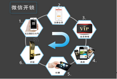 首先进入酒店微信公众号订房成功以后,当客人需要使用微信开锁的时候会发送短信验证码到客人手机上,只有验证通过已经才能开启门锁。WiFi互联网门锁由三部份组成: