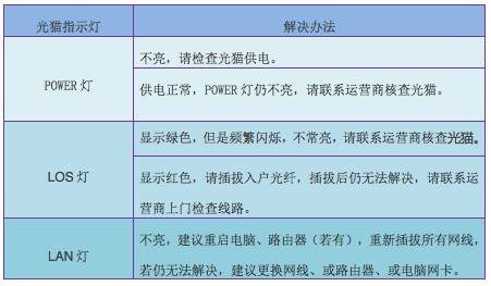 6、光猫各指示灯的功用及简单故障排除参见光猫说明书,通用的简单障碍处理方法如下: